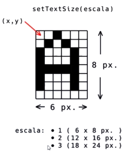 - display.setTextSize(n): Establece el tamaño de fuente, admite tamaños de 1 a 8